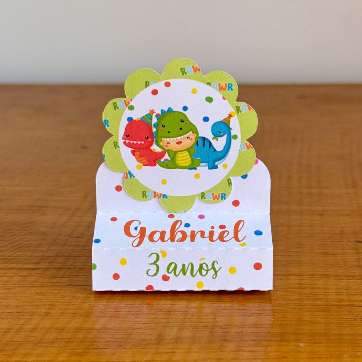 Transforme a festa do seu pequeno em um mundo de aventuras pré-históricas com nosso Porta Bis Duplo Personalizado! Perfeito como lembrancinha ou para decorar a mesa de doces, este item é ideal para encantar seus convidados.